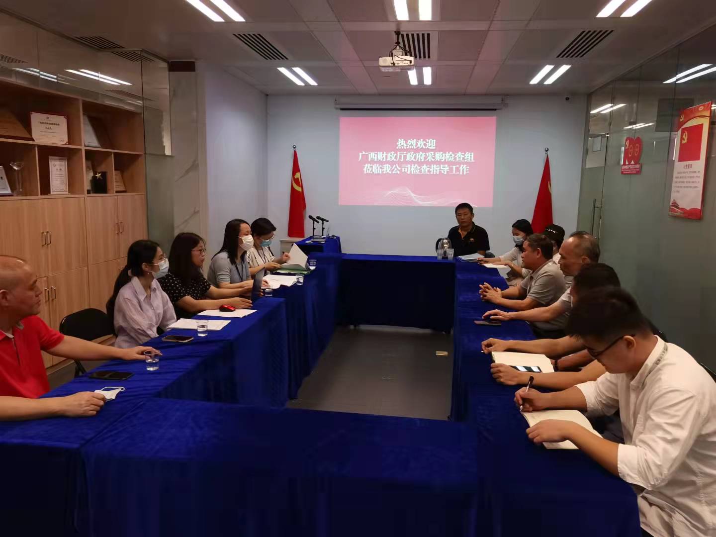 8月13日上午,廣西壯族自治區(qū)財(cái)政廳政府采購(gòu)檢查組蒞臨我公司進(jìn)行年度檢查現(xiàn)場(chǎng)查驗(yàn)工作。我公司總經(jīng)理陳浩、副總經(jīng)理黃藝組織公司政府采購(gòu)工作相關(guān)人員積極配合檢查組開展工作。